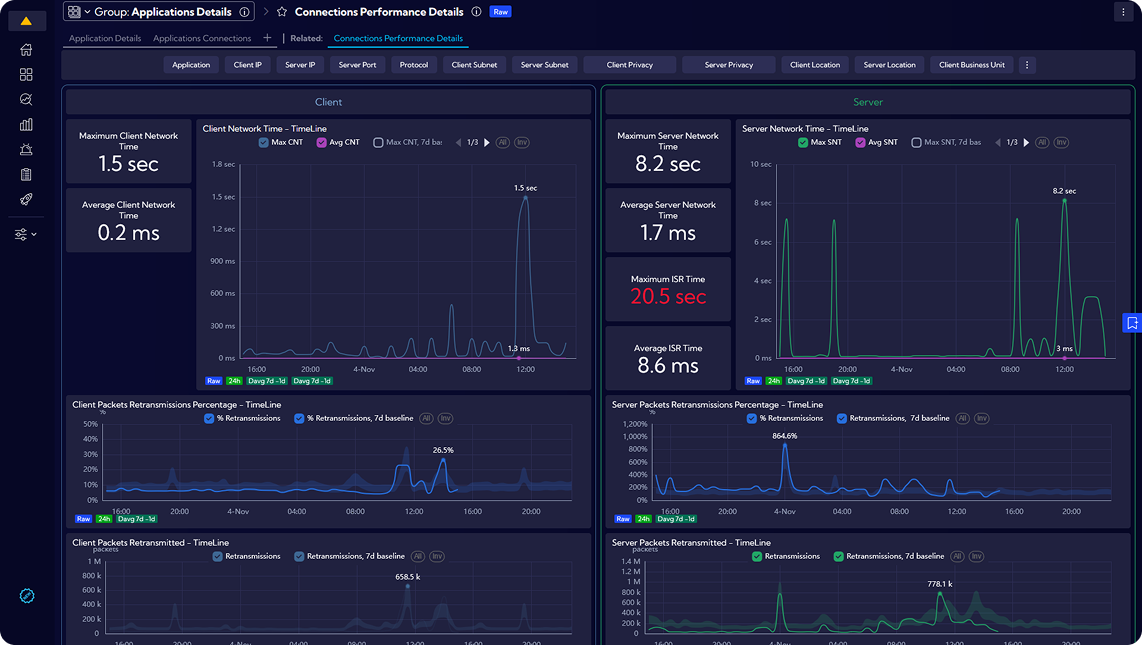 Critical performance metrics measurements in any infrastructure. Focused on L4-L7 monitoring, from TCP analytics to L7 app detection and apps response times measurements.