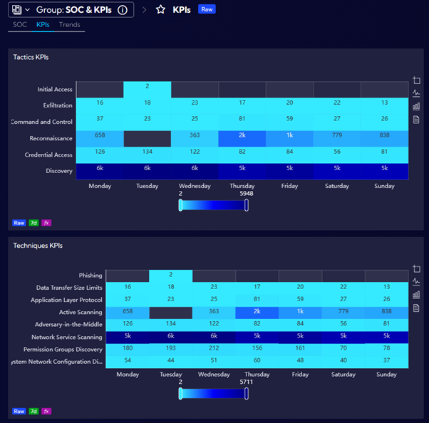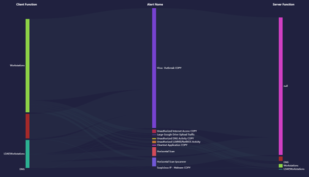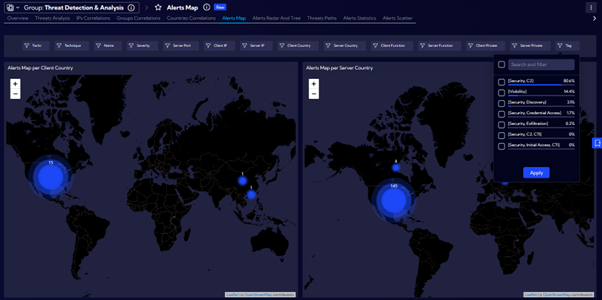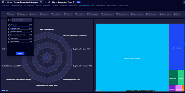 This type of analysis allows you to focus on specific tactics or techniques, e.g. exfiltration. By doing so, analysts can filter out all other threats, resulting in a more comprehensible data analysis.