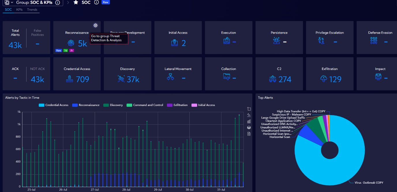 The ability to track suspected activity using flexible dashboards with a multitude of data analytics supporting functions, makes working with the system effective, fast, and pleasant for every system user, regardless of whether they are an experienced security engineer or a novice SOC analyst.