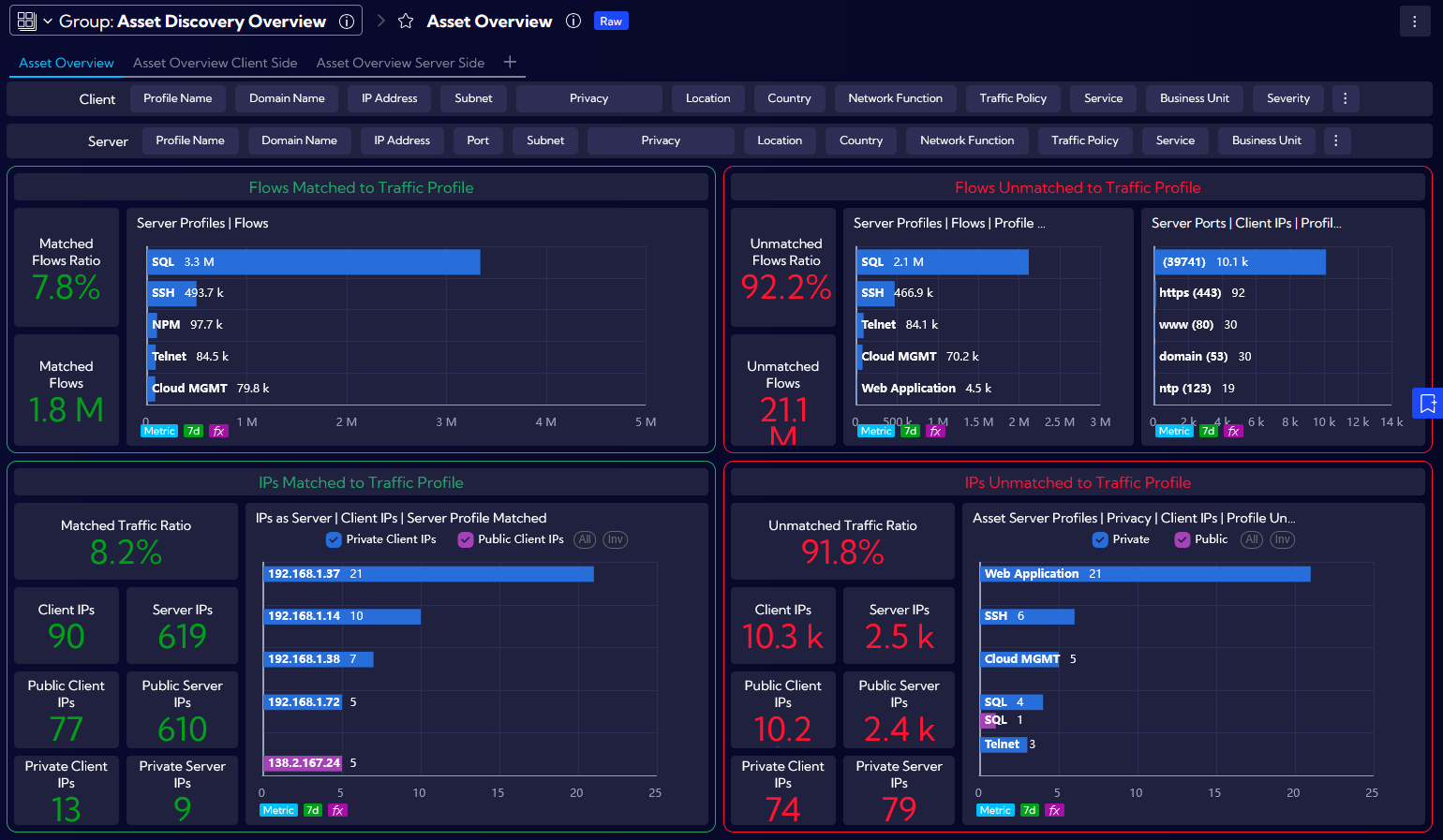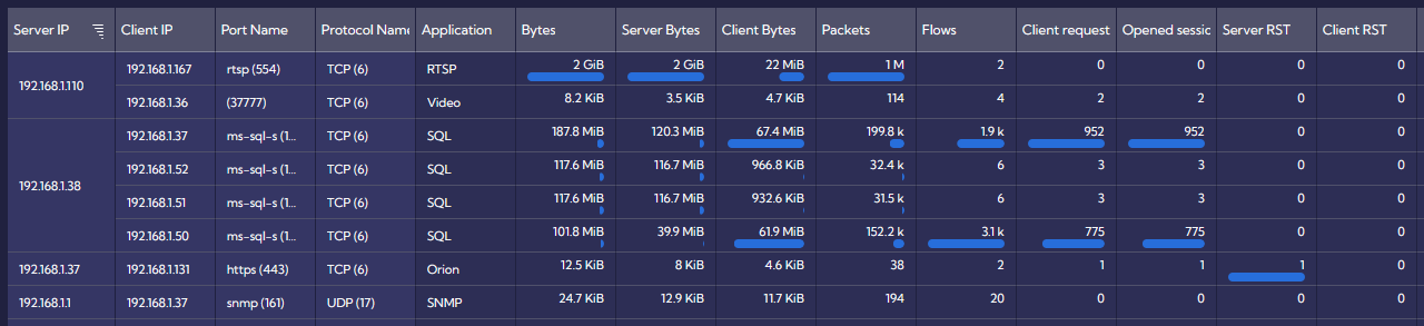 We have insight into all applications and ports that are used by a given resource, e.g., a server, as well as all connections to and from, including traffic policies and the number of flows.