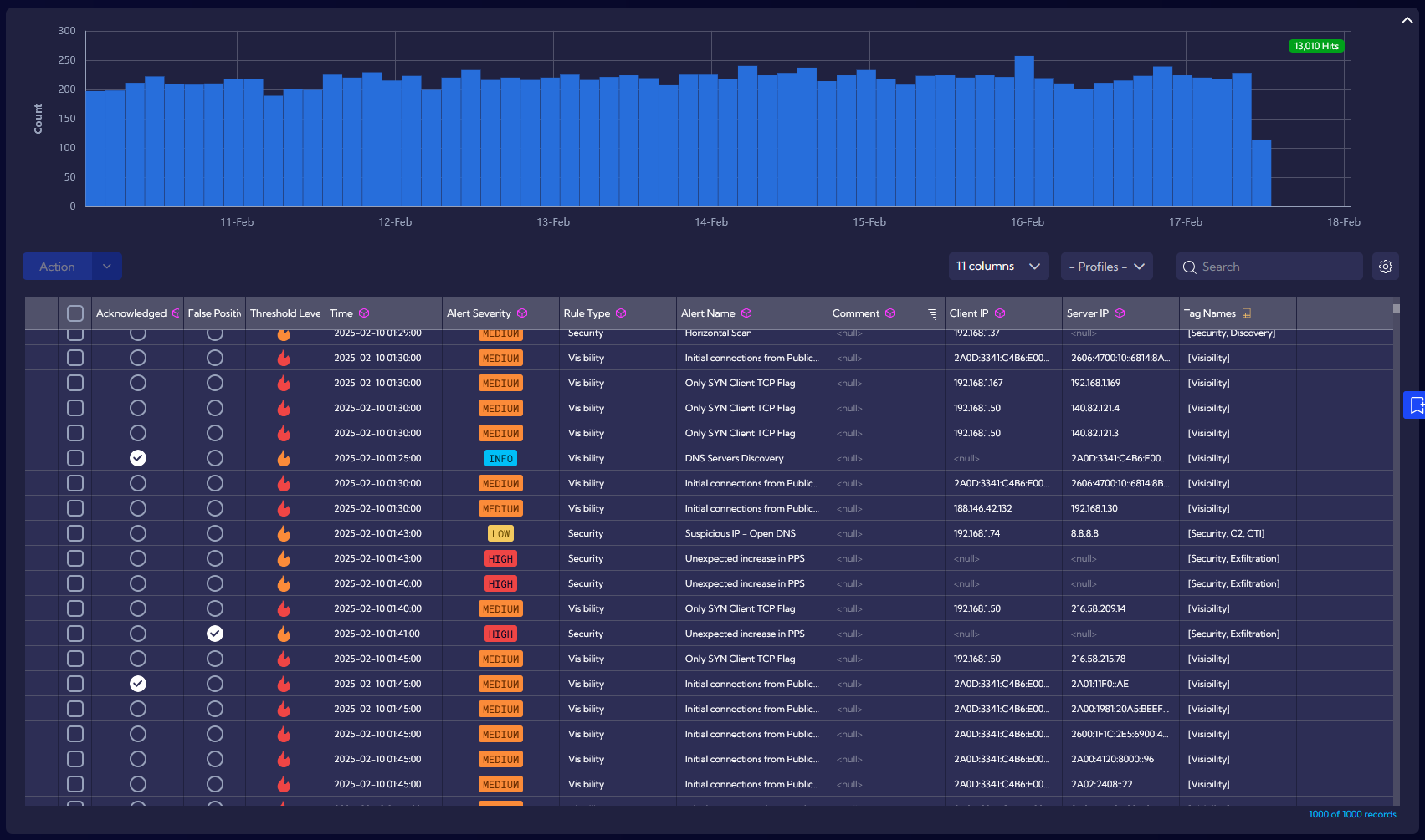 Depending on the results, we can improve our policies or decide to introduce additional blocks for network traffic. This gives us full control over the network, regardless of its size. Especially since all views can be filtered at any time by any variables such as subnetwork, priority, location, and many others.