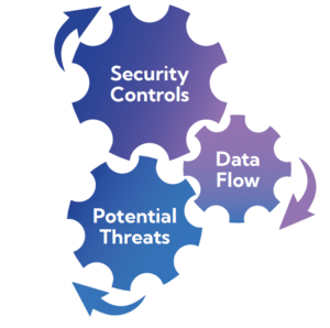 - Data Flows (define how data flows through the system to determine where the system may be attacked)