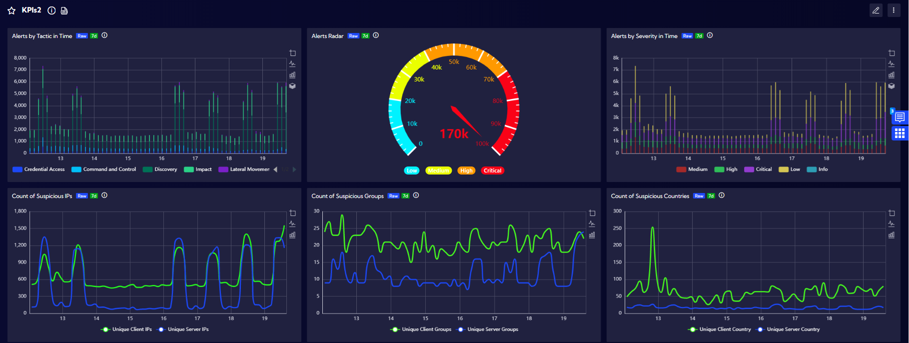 The threat hunting process can include statistical analysis, behavioural analysis, and machine learning. Statistical analyses concern the detection of anomalies, trends, or deviations from baselines. They can be easily detected in systems that allow easy configuration and analysis of specific views, such as for example Sycope, which is a system to monitor network traffic. Figures 3 and 4 show examples of views that facilitate statistical analysis.