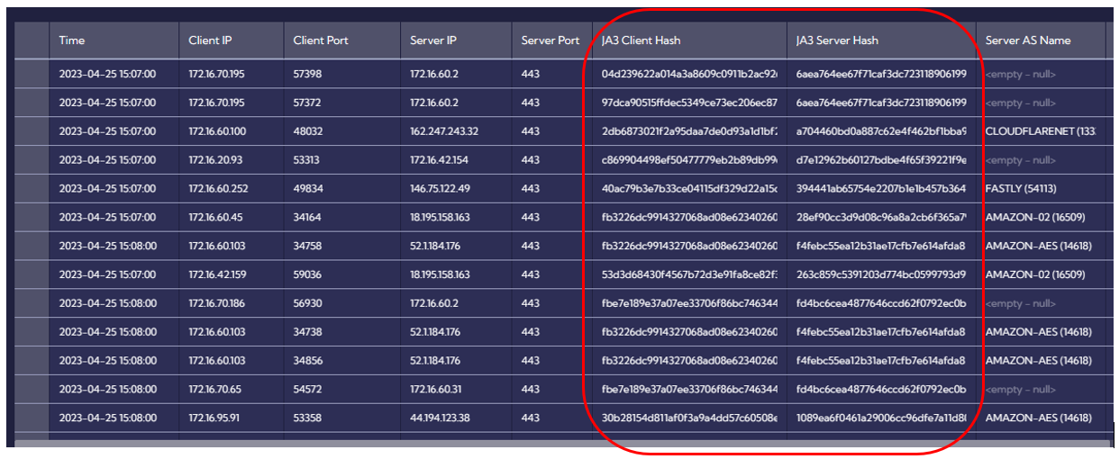 Figure 1. Example of enriching NetFlow with JA3 fingerprints