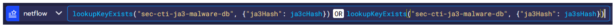 Figure 2. Example of query to find malicious traffic based on JA3 fingerprints.